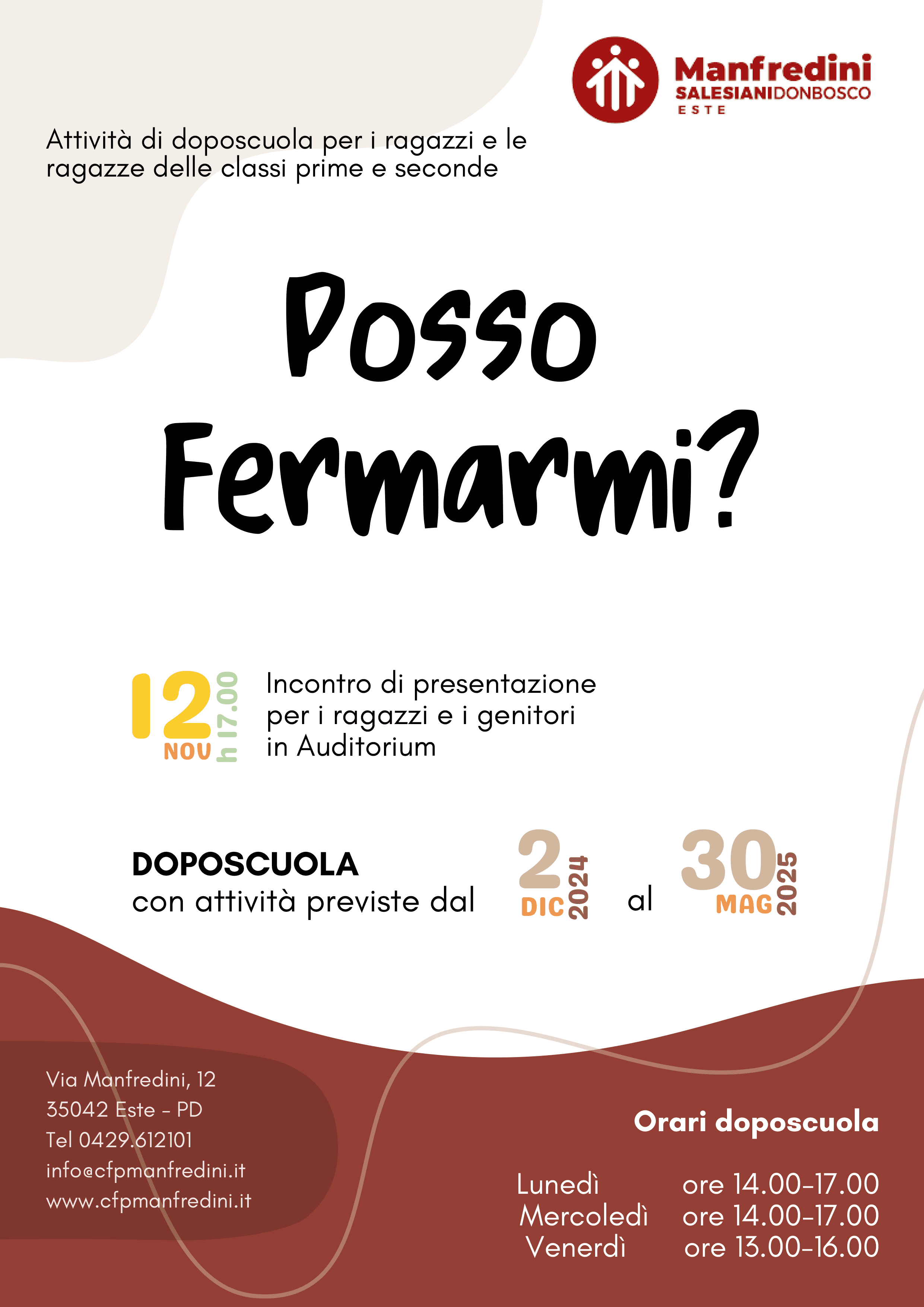 ISCRIZIONI ALLA SCUOLA DI FORMAZIONE PROFESSIONALE MANFREDINI DI ESTE PD ANNO SCOLASTICO 2025-2026